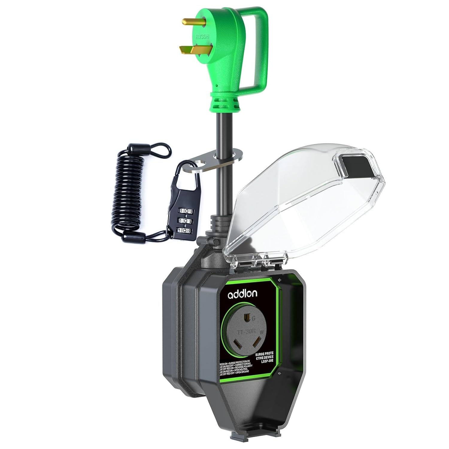addlon RV Surge Protectors 30 Amp Circuit Analyzer with Waterproof Cover and Anti-Theft Lock, RV Adapter Plug for Camper, ETL Listed, Green