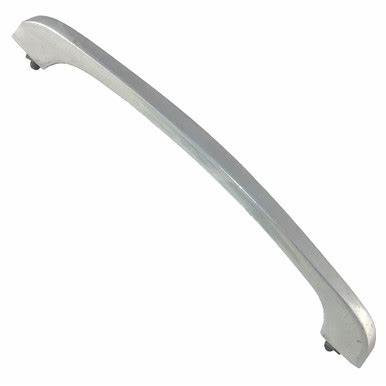 This cast aluminum handle was used on 1970 and newer Airstreams. The handle is mounted from the back side so you will need to temporarily remove the interior wall behind the handle in order to mount this part.