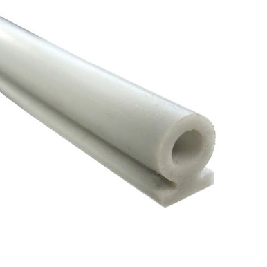 We made this gray silicone rubber bulb seal to fit in the extrusion on the hingeless (removable) baggage compartment doors on Airstreams in the late 1960s. On those hatch doors, the T-base slides into a channel on the back side of the doors.
