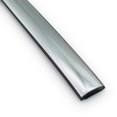 Our chromed adhesive trims made by encapsulating mylar in clar PVC. That makes our trim longer lasting than the original on late model Airstreams. It will not crack if going around curved body panels like those on the exterior of an Airstream or Boler. It should not be bent on a very tight radius. Adhered with a strong 3M adhesive that will not come loose.