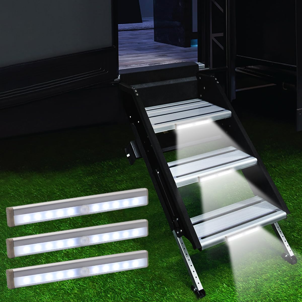 - 【Package Includes 】Includes 3 rv outside lights and 3 Sticky Magnetic Tape to match the commonly RV steps.