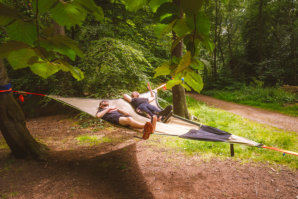 The Safari DUO, is the heavy-duty version of Tentsile’s 2-Person hammock. With its anti-roll technology, two people can comfortably lie side-by-side, with all the creature comforts you’d need for hanging out in the trees.
