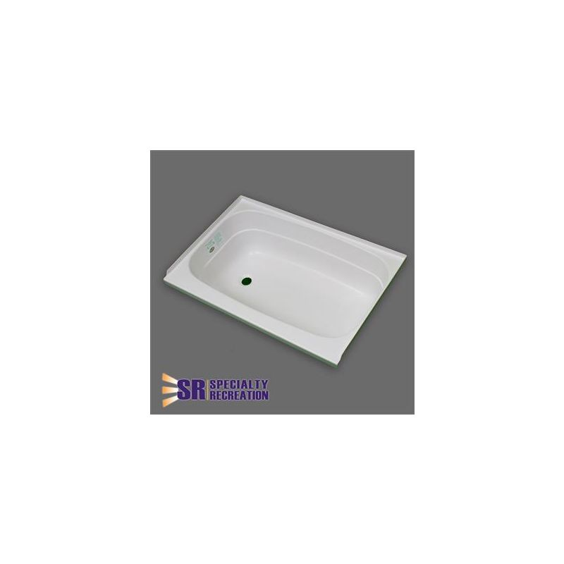 32″ x 24″ white bathtub with an 11″ height and a left hand drain made by Specialty Recreation. For use in an RV bathroom.