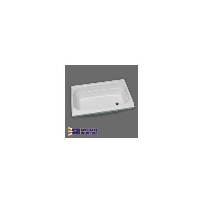 36″ x 24″ white bathtub with an 11.5″ height and a right hand drain made by Specialty Recreation. For use in an RV bathroom.