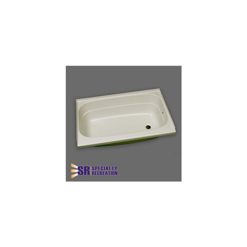 38″ x 24″ white bathtub with an 11″ height and a right hand drain made by Specialty Recreation. For use in an RV bathroom.