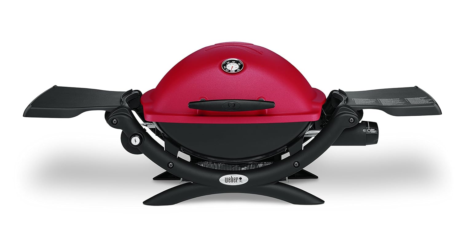 • The Red Weber Q1200 Travel Grill features porcelain-enameled, cast-iron cooking grates; Grates offer superior heat retention, flavor infusion, and an attractive appearance as you elevate your grilling experience